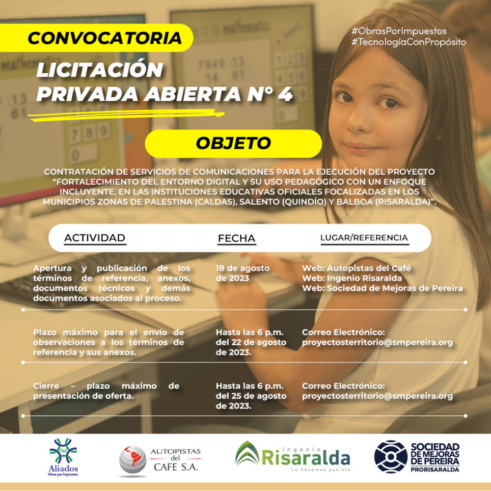 Aquí publicamos nuestras convocatorias activas, donde encontrarás información sobre licitaciones, procesos contractuales, requerimientos de bienes y servicios, así como oportunidades laborales o de colaboración.